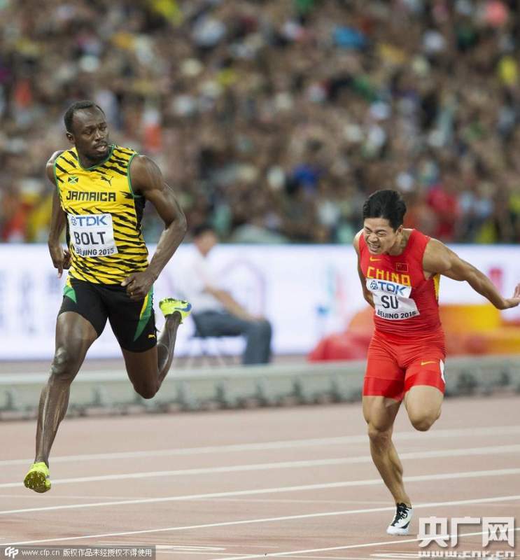 央广网北京8月23日消息 在刚刚结束的北京田径世锦赛男子100米半决赛中,中国选手苏炳添凭借完美的起步,再次打开10秒,跑出9秒99 ,同组的牙买加“闪电”尤塞恩·博尔特在最后10米完成超越,以9秒96名列小组第一,率先挺进决赛。