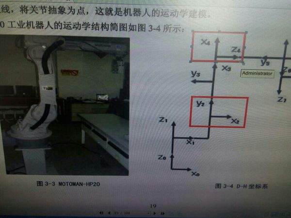 机器人dh坐标系的建立xi的方向不是应该指向下一个轴吗,这里的x2和x4为什么不是这样呢, 另外坐标系0的原点0,0,0乘以位姿矩阵后得到的新坐标是变换后矩阵的原点在坐标系0中的位置吗?我根据这幅图的论文计算出来后,描绘出来的点似乎和机器人各个坐标系原点的位置不相符。 新人第一次发帖,还请大家多多帮助,多谢1 1.jpg |