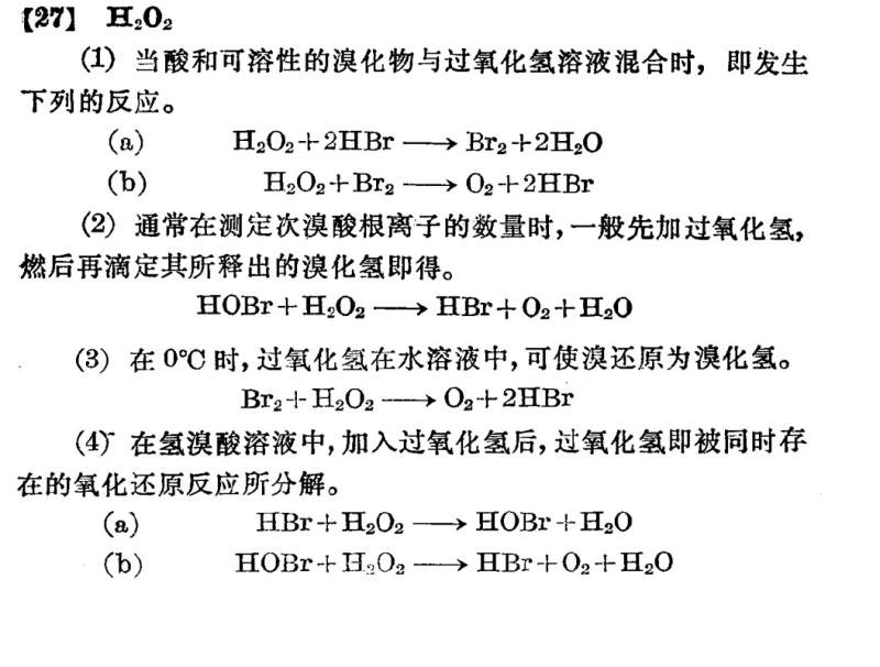 | 近期做一个实验,原水溴离子含量大概2g/L,用27.5%的过量的双氧水在常温下充分搅拌将其氧化,然后取一个样测溴离子含量,还是接近2g/L,为什么会这样,是因为反应物浓度太低吗,还是因为检测溴离子时由于过量双氧水存在,检测方法不靠谱?求助各位高手 |