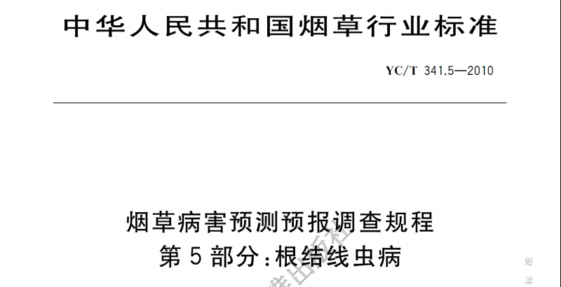YC/T341.5-2010烟草病害预测预报调查规程第5部分:根结线虫病电子版 这是我跟参与写此标准的专家要的,看到网上有卖的16.5元,现在免费与进行根结线虫研究的大家分享! 20150831165842.png |