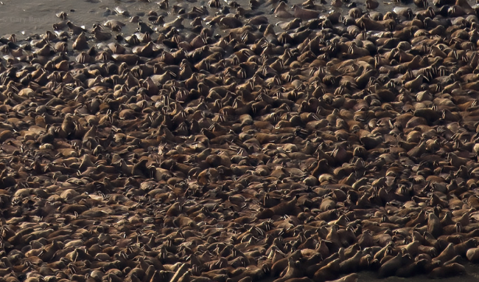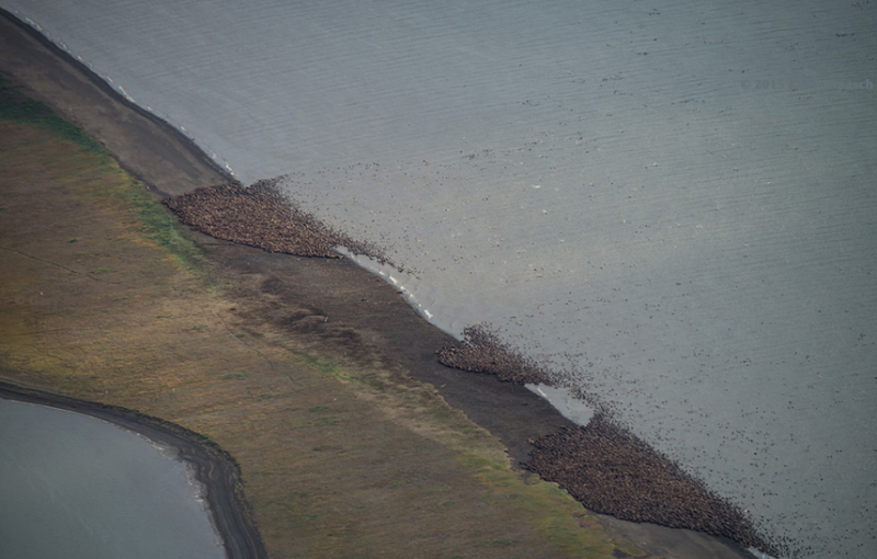 据新闻网站Mashable报道,近日,成千上万只海象在阿拉斯加北极海岸西北部的波因特莱上岸。据当地居民称,8月20日,这些巨大的海兽及其幼子陆续出现于Kasegaluk泻湖沿岸的沙洲。野生动物学家表示,由于全球变暖,夏季北冰洋海冰大规模融化,找不到落脚处的海象只好成群结队爬上岸,而今年相较于往年,上岸时间大幅提前。 今年的海象上岸恰好发生于奥巴马总统访问阿拉斯加州科策布城的前一周,科策布城位于上岸地南部200英里处。奥巴马此行旨在强调全球变暖对阿拉斯加生态的不良影响:海冰减少,海象不定期上岸,且上岸时间不断提前。 海象第一次上岸发生在2007年前,2007年至今的九年间,一共有7次这样的现象。美国地质勘探局从2007年起开始监测海象上岸,建立起其与海冰状况的关系。据美国国家冰雪数据中心数据,在过去12年间,北冰洋海冰数量有4次处于历史最低水平,分别是:2002,2005,2007和2012年。而今年,很可能是第5次。 往年,最多一次有40000只海象上岸,去年,上岸的海象数量为35000只,图中为去年9月北极海岸波因特莱的场景。美国地质勘探局的发言人表示,今年海象上岸的数量暂时无法得到确认。 科学家担心,海象在爬行过程中会相互踩踏碾压或伤及海象幼崽。2014年,60头海象因此丧命。政府推行针对海象上岸的野生动物管理方案以保护他们。 |