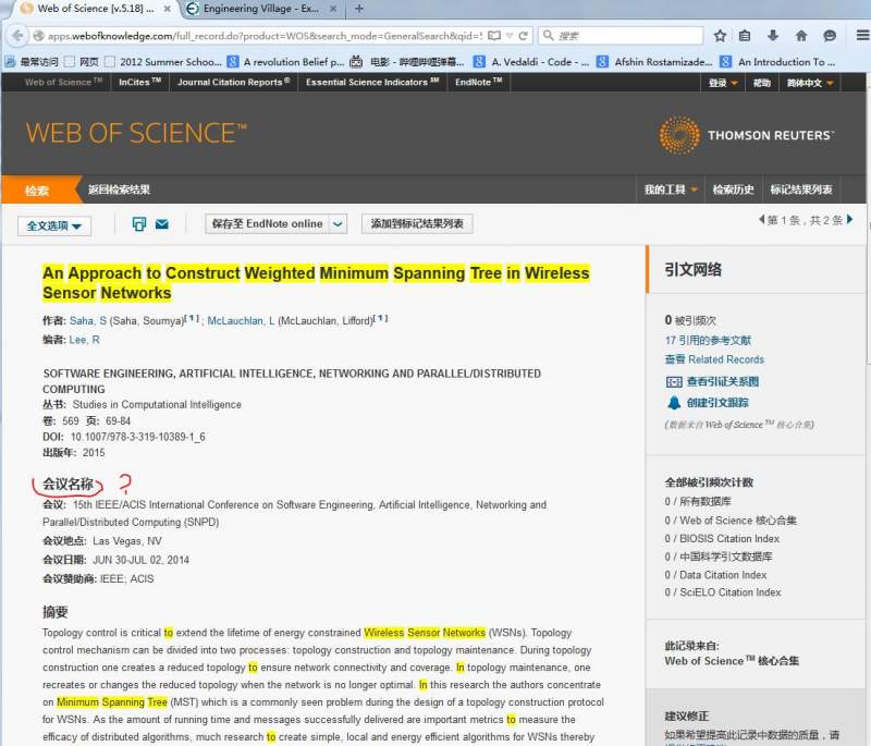 在Web of science中翻到一篇论文, 居然是会议论文,这个算SCI收录么? 并且比较奇怪的是这篇论文EI中找不到 这属于什么情况(不是默认的EI收录的包含SCI收录的,如果这个算SCI收录的话) Web of Science.JPG Engineeringvillage.JPG |