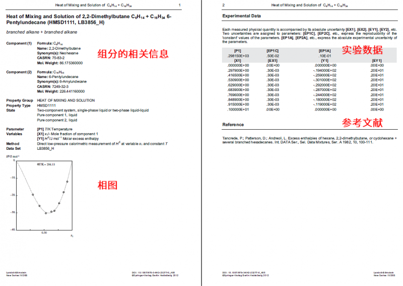 这是一本手册,收集了非电解质的双液系系统的相图。基本上都是有机物的双液系。 每个图均给出了实验数据、相图图像、参考文献。附有索引,便于查找。 --------------------------------------------- 书名 Binary Liquid Systems of Nonelectrolytes I 编辑 H. V. Kehiaian 作者 I. Cibulka, J.-C. Fontaine, K. Sosnkowska-Kehiaian, H. V. Kehiaian ISBN 978-3-642-02934-9 (Print) 978-3-642-02935-6 (Online) 出版 Springer Berlin Heidelberg 官网 http://link.springer.com/book/10.1007/978-3-642-02935-6 书名 Binary Liquid Systems of Nonelectrolytes II 编辑 H. V. Kehiaian 作者 I. Cibulka, J.-C. Fontaine, K. Sosnkowska-Kehiaian, H. V. Kehiaian ISBN 978-3-642-23276-3 (Print) 978-3-642-23277-0 (Online) 出版 Springer Berlin Heidelberg 官网 http://link.springer.com/book/10.1007/978-3-642-23277-0 书名 Binary Liquid Systems of Nonelectrolytes III 编辑 H. V. Kehiaian 作者 I. Cibulka, J.-C. Fontaine, K. Sosnkowska-Kehiaian, H. V. Kehiaian ISBN 978-3-642-22851-3 (Print) 978-3-642-22852-0 (Online) 出版 Springer Berlin Heidelberg 官网 http://link.springer.com/book/10.1007/978-3-642-22852-0 . 示例.png 封面.png |