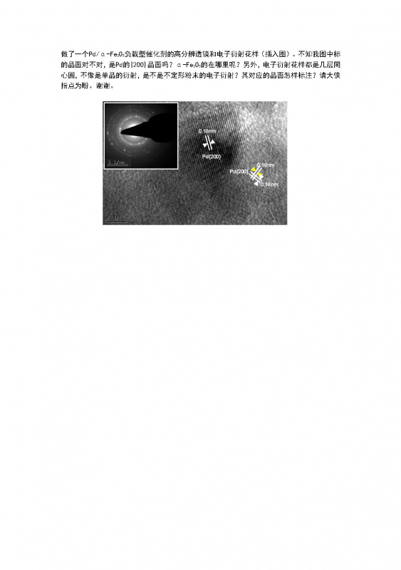 Pd/α-Fe2O3负载型催化剂的高分辨透镜和电子衍射花样请教! 已有1人参与
