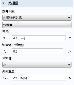 COMSOL软件中使用对流热通量的内部强制对流时,请问:等温管管径D,对于直管而言是直管圆截面的管径,对于非直管而言,是什么? 是不是当量直径?非直管(比如螺旋管)该怎么通过具体尺寸求对应的当量直径? 万分感谢…… ![]() ![]() ![]() 搜狗截图15年08月31日1653_1.png |
