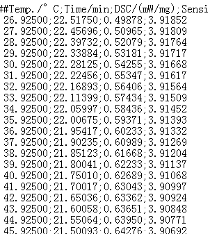 道友们,我刚做了DSC的数据,但是老师考给我的是TEX数据,这个数据要在origin里面处理,但是测试老师考的数据的后面有分号,不是纯数据,我咋才能从TXT里面直接考数据而不要符号呢,求助啊! AZR)~95Z${`(VMKO}T%NDOS.png |