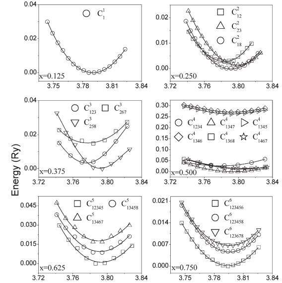看到一篇文献,合金掺杂构型,存在多种构型,选择构型的原则就是根据能量最小原则,文章以此画出了不同构型的能量曲线图,横坐标点阵参数,纵坐标是能量,如图所示,不太理解,这是什么能量?如何得到这种图的?文章后面还利用third order Birch Murgnahans 状态方程法来分析能量曲线图,最终得到每一种构型的点阵参数,请问有大神了解的吗? 1.jpg |