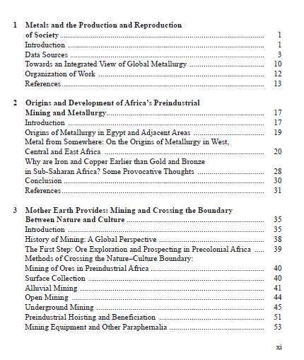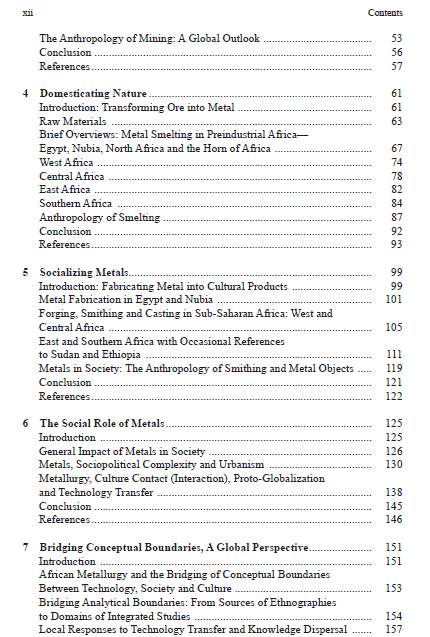 Metals in Past Societies A Global Perspective on Indigenous African Metallurgy Authors: Shadreck Chirikure ISBN: 978-3-319-11640-2 (Print) 978-3-319-11641-9 (Online) |