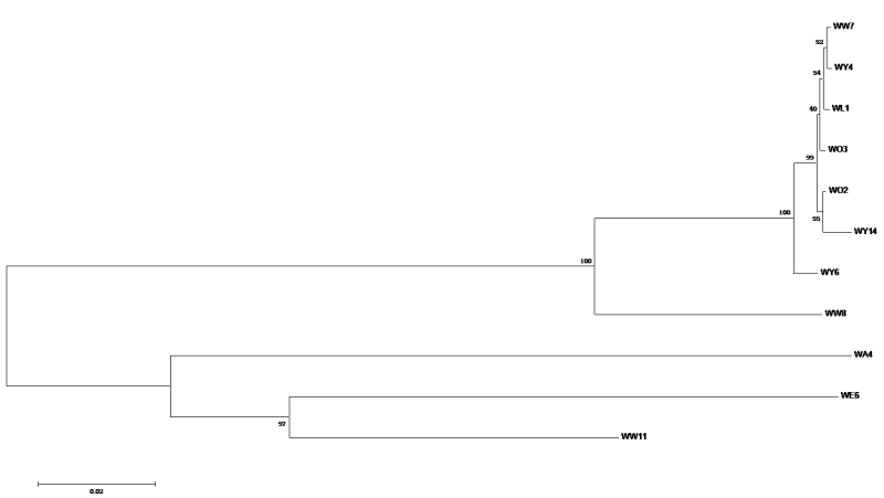 大神帮我分析一下我这个系统发育树上的菌株,哪些是可以归为同一个菌种的
