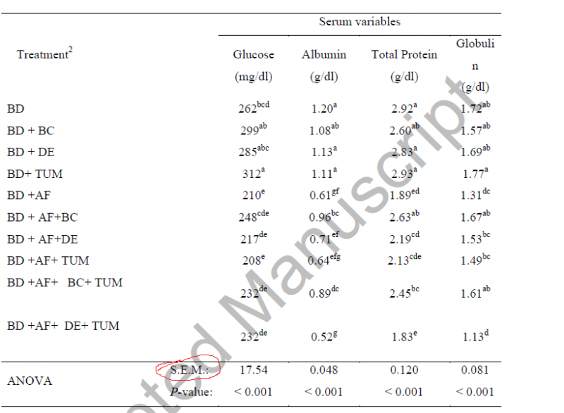 统计这方面的小白,最近看到一篇文献,不知这个SEM是怎么求出来的,代表的是啥意思,就例如这个17.54代表的是Glucose的标准误,还是每组标准误的均值。