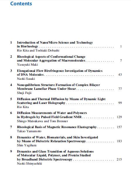 Nano/Micro Science and Technology in Biorheology Principles, Methods, and Applications Editors: Rio Kita, Toshiaki Dobashi ISBN: 978-4-431-54885-0 (Print) 978-4-431-54886-7 (Online) |