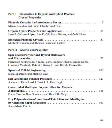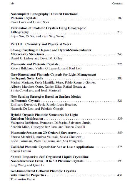Organic and Hybrid Photonic Crystals Editors: Davide Comoretto ISBN: 978-3-319-16579-0 (Print) 978-3-319-16580-6 (Online) |