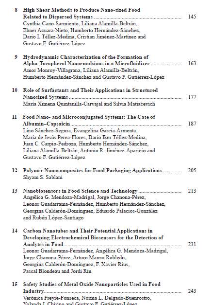 Food Nanoscience and Nanotechnology Editors: Humberto Hernández-Sánchez, Gustavo Fidel Gutiérrez-López ISBN: 978-3-319-13595-3 (Print) 978-3-319-13596-0 (Online) |