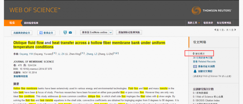 求助此文的检索收录证明以及自引和他引次数,谢谢。 Oblique fluid flow and heat transfer across a hollow fiber membrane bank under uniform temperature conditions |