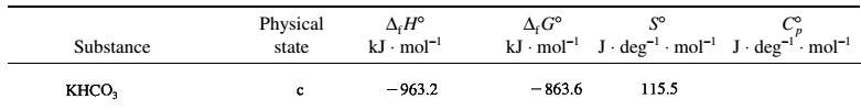 | 求KHCO3的热力学数值,查了热力学数据表还是找不见,哪位大侠有好的计算方法。求帮忙!!!!!!! |
