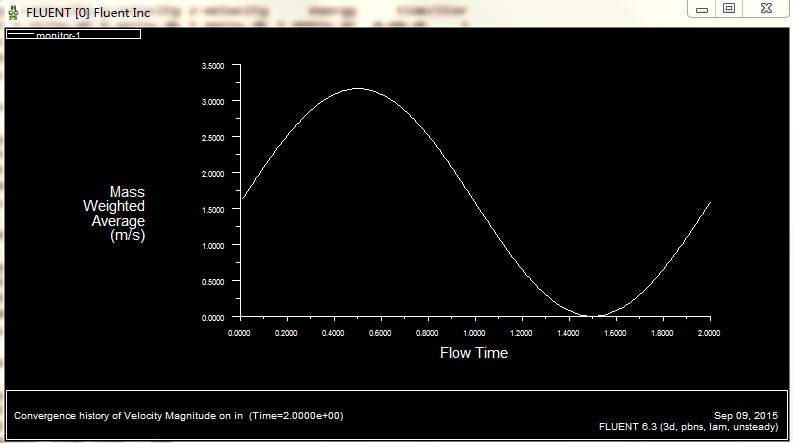 各位虫友大家好,我现在在用fluent计算一个非稳态流动换热,模型就是一个矩形通道 ,要使它的速度入口为一个正弦函数,如v=2+2sin(2*pi*f*t),也就是说进口速度是随时间正弦变化的,程序导入没问题,也可以计算,但是在监测速度随时间的变化时,初始值不是2,而且幅值也不对。请教各位大神,这是什么原因造成的呢?跪求回复,万分感谢! }{KTEDH(IZ6YGC{{H88GH6D.jpg |