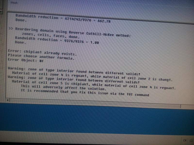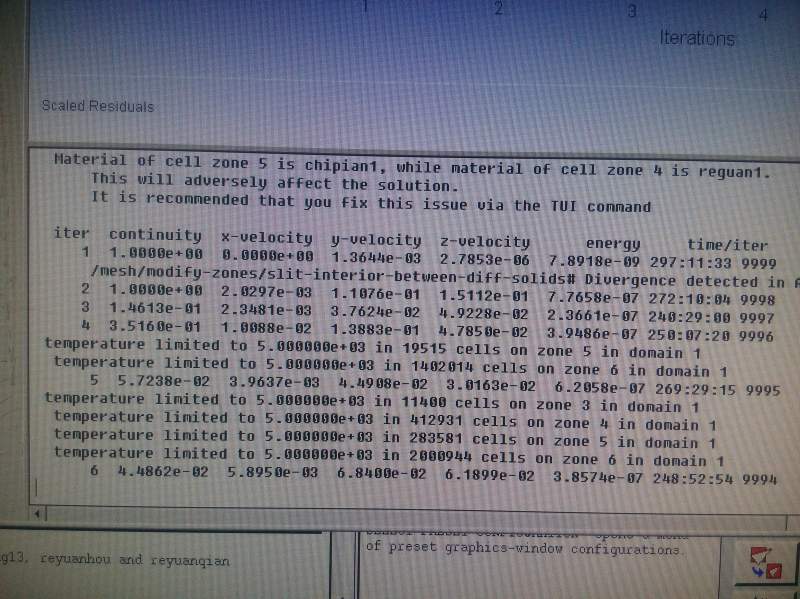 1:msh图片中,是我在gambit中画的网格,输出后提示有个warning,但是输出也成功了,那个warning有影响吗? 2:初始化之后图片中,是我在fluent中初始化出现的,也是有warning,不知道是什么问题,但是可以计算 3:计算过程中图片,开始迭代后出现温度最大限制是5000,但是我没有设置温度啊,怎么回事?求大神解释 初始化之后.jpg msh.jpg 计算过程中.jpg |