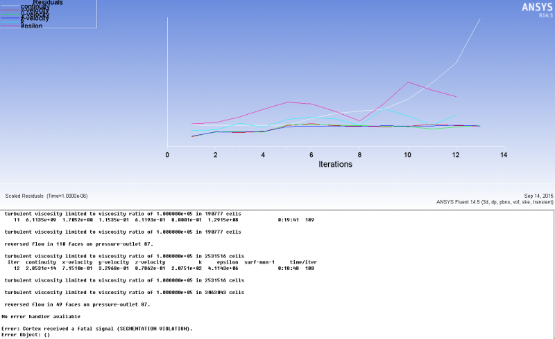 在做fluent油气两相流的3D模型时,计算结果一直发散,显示温度值上溢,湍流黏度上溢。网格检查过没问题,之前单相计算都可以。在取消了能量方程之后,粘度值仍然发散不能收敛。库朗数patch后显示为8.67。现在就是不清楚模型为何一直发散,求大神指点!不胜感激!百度网盘附件是fluent模型