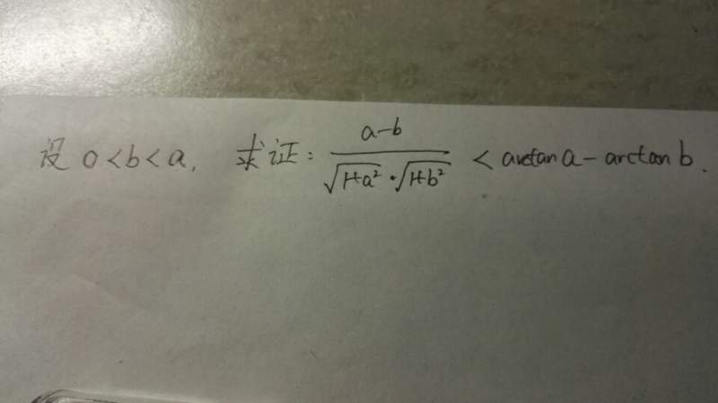 向左侧移项,将a换成x,作辅助函数f(×),则f(b)=O。而f‘(x)<0,x>b,由单调性f(a)<O即可