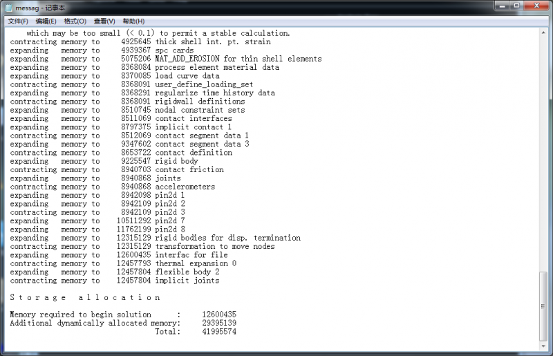 另一个问题是:所需的内存为 41995574 = 41,995,574 ,约为 42 G,估计你的机器没有这么大的内存。可以加大虚拟内存试试,再不行就要设法减小有限元模型的规模。