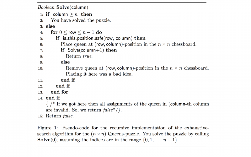 // Solves the n-Queens problem by (recursive) backtracking