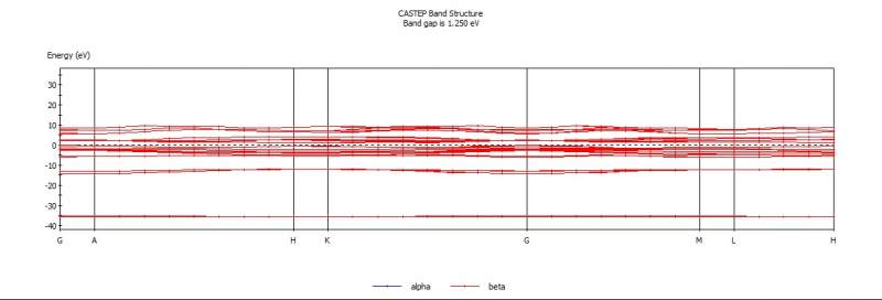 我感觉你第二张图哪里出错了,我之前好像也遇到过类似问题,忘了怎么办了。按照你第一张图,它的带隙是1.25eV,是半导体材料,你可以把数据导出来,再origin里画出来,找出导带低和价带顶位置,标注一下 发自小木虫Android客户端 |