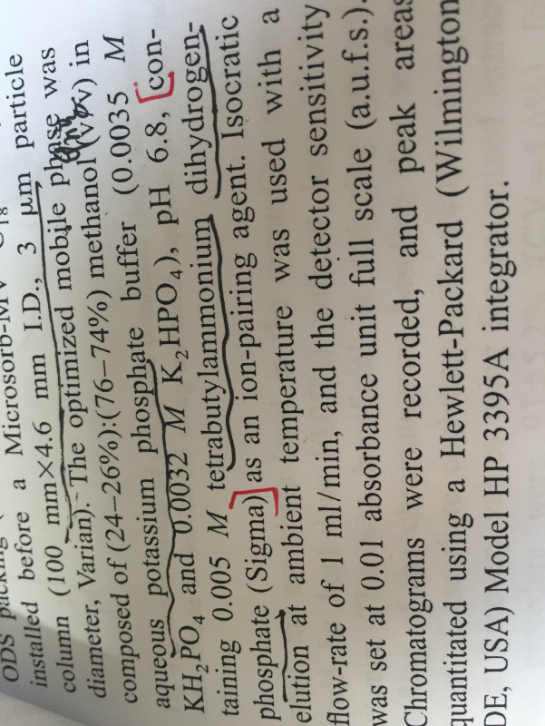 大神, 1、因为我的原材料是面粉,所以用Ppm的单位。我是想根据标准曲线找到浓度乘以进样体积,得到进样体积的质量,再根据比例看提取到了多少溶液换算的,我也不知道对不对。 2、那看到文献中说缓冲液中有少量离子对试剂,这个少量如何界定?我使用的是庚烷磺酸钠,但发现应该从sigma购买如图一左边的我买成了右边类型的,不知该怎么办 3、Spe是不是用针管来加压就可以呢,那个流速通过针管控制加样来控制呢 鞋过大神 期待你的回复 发自小木虫IOS客户端 |