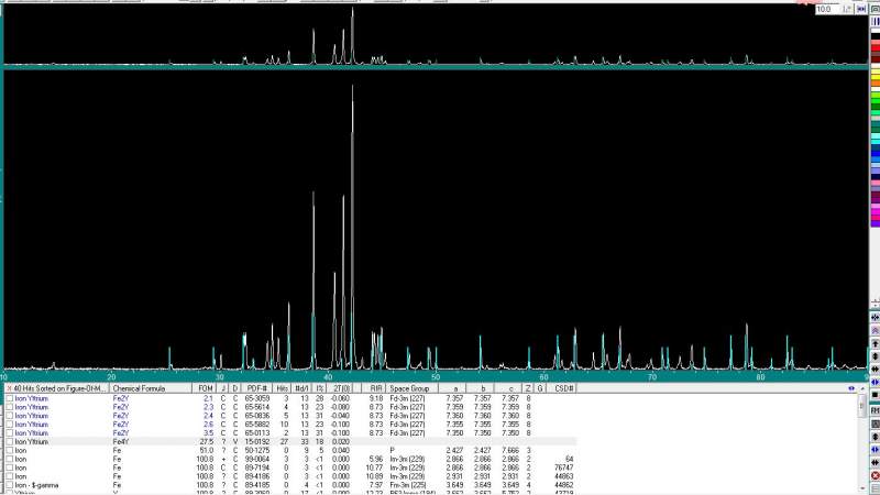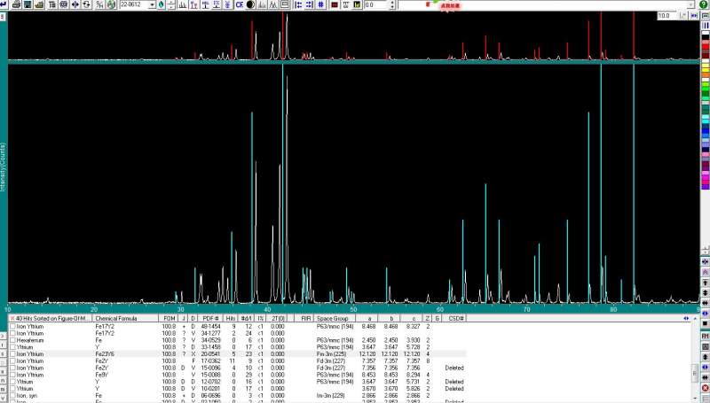 附件是XRD衍射数据(元素:Fe、Y,可能含有氧) 自己判断有Fe4Y,但PDF卡片没有晶体结构信息。查找相关文件,报道Fe4Y即为Fe23Y6,但Fe23Y6衍射峰位大多不能较好匹配。 求Fe4Y晶体结构信息,最好能有CIF文件。。 Fe4Y.JPG Fe23Y6.JPG |