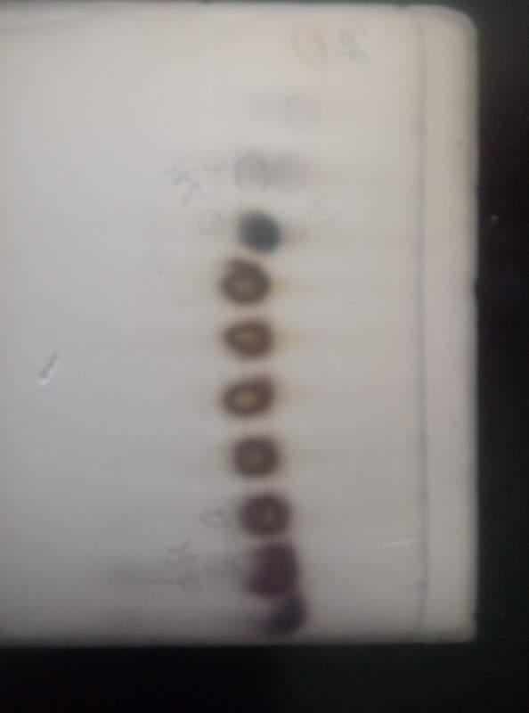 最近做植物的提取分离,提取物用展开剂为,正丁醇:冰醋酸:水=4:1:5进行展板,展开后的点如图(如图中第二个点),但是走液相可以发现他其实是两个点,并不纯,而且含量都比较大,他们Rf值相同,不知道怎么分开它们。试过氯仿:甲醇,石油醚:丙酮等展开剂 都没法分开、、、求分开的方法!谢谢 IMG_20150910_125617.jpg |