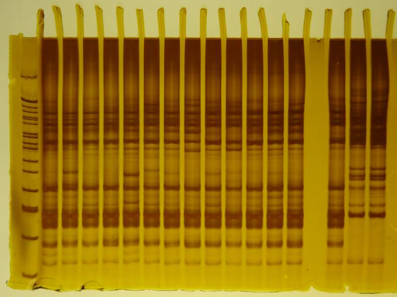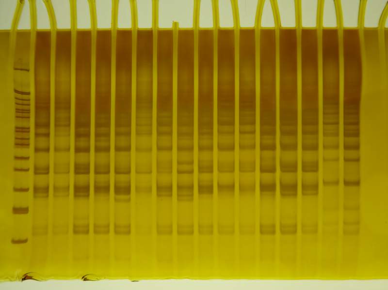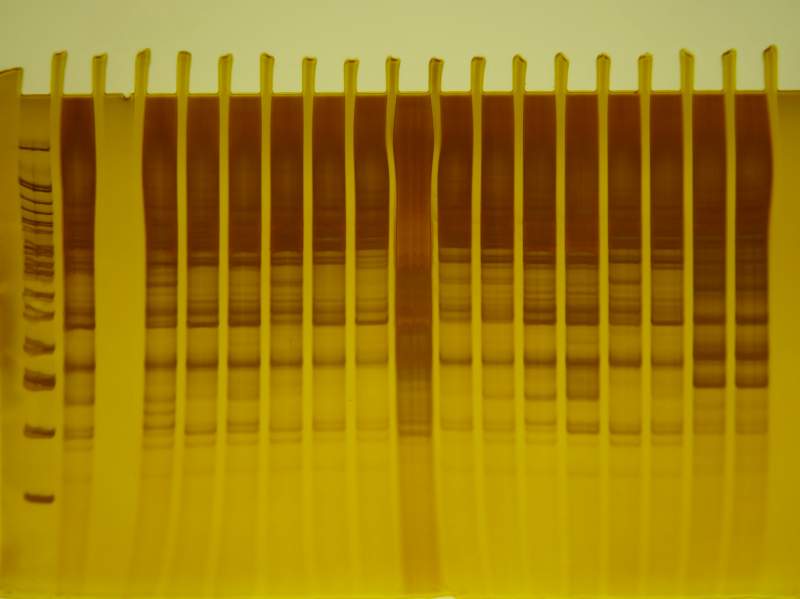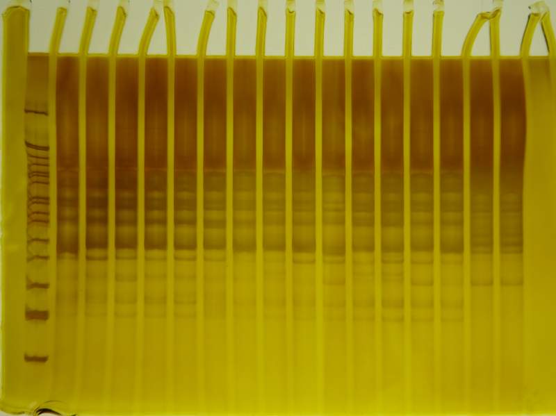 请问一下我的聚丙烯酰胺胶跑成这个样子,到底是什么原因? 已有5人参与