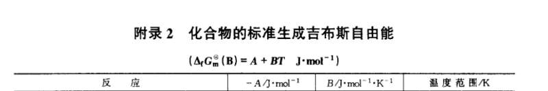 求几种金属氧化物的标准摩尔吉布斯自由能数值已有3人参与