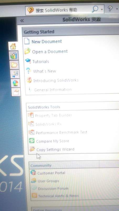 Solidworks 资源面板显示英文 点击里面的东西也没反应 求助怎么解决???