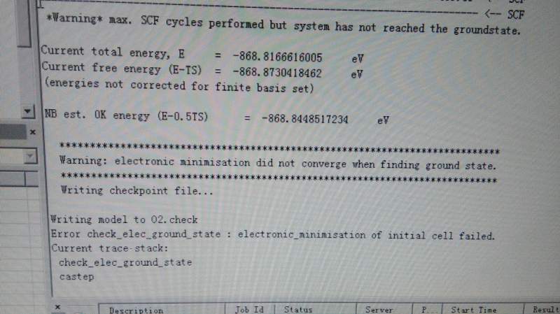 这是我自己按照教程模仿CO来构建O2的模拟,不管是按书上的参数设置,还是我自己设的参数都不行,提示说电子最小化不能收敛如图~ 有没有大神帮忙看看这该怎么解决~ ![]() ![]() 错误提示.jpg 1442806031210.jpg |