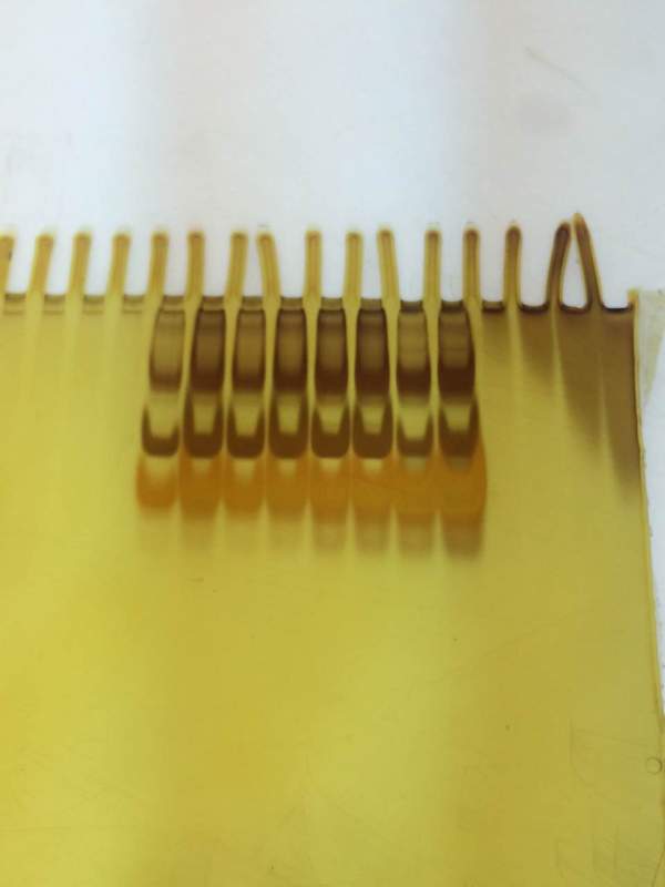 24bp长度的寡链核酸,跑PAGE 胶的浓度是20% 160V电压,电泳40分钟。 银染法染色,用的胶配方:丙烯酰胺,水,10%过硫酸铵,TEMED. 跑出来的胶如下 搞不清楚哪个条带是寡链核酸的条带。到底这个胶需不需要用尿素变性呢?上面的配方是变性的胶还是没有变性的胶呢? 有没有做过这么短的寡链核酸的朋友?教教我吧 IMG_1676.JPG |