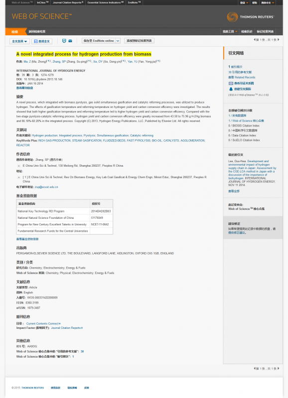 A novel integrated process for hydrogen production from biomass 作者:Ma, Z (Ma, Zhong)[ 1 ] ; Zhang, SP (Zhang, Su-ping)[ 1 ] ; Xie, DY (Xie, Deng-yin)[ 1 ] ; Yan, YJ (Yan, Yong-jie)[ 1 ] INTERNATIONAL JOURNAL OF HYDROGEN ENERGY 卷: 39 期: 3 页: 1274-1279 DOI: 10.1016/j.ijhydene.2013.10.146 出版年: JAN 16 2014 查看期刊信息 摘要 A novel process, which integrated with biomass pyrolysis, gas solid simultaneous gasification and catalytic reforming processes, was utilized to produce hydrogen. The effects of gasification temperature and reforming temperature on hydrogen yield and carbon conversion efficiency were investigated. The results showed that both higher gasification temperature and reforming temperature led to higher hydrogen yield and carbon conversion efficiency. Compared with the two-stage pyrolysis-catalytic reforming process, hydrogen yield and carbon conversion efficiency were greatly increased from 43.58 to 75.96 g H-2/kg biomass and 66.18%-82.20% in the integrated process. Copyright (C) 2013, Hydrogen Energy Publications, LLC. Published by Elsevier Ltd. All rights reserved. 关键词 作者关键词:Hydrogen production; Integrated process; Pyrolysis; Simultaneous gasification; Catalytic reforming KeyWords Plus:RICH GAS-PRODUCTION; STEAM GASIFICATION; FLUIDIZED-BEDS; FAST PYROLYSIS; BIO-OIL; CATALYSTS; AGGLOMERATION; REACTOR 作者信息 通讯作者地址: Zhang, SP (通讯作者) [显示增强组织信息的名称] E China Univ Sci & Technol, 130 Meilong Rd, Shanghai 200237, Peoples R China. 地址: [显示增强组织信息的名称] [ 1 ] E China Univ Sci & Technol, Res Ctr Biomass Energy, Key Lab Coal Gasificat & Energy Chem Engn, Minist Educ, Shanghai 200237, Peoples R China 电子邮件地址:zsp@ecust.edu.cn 基金资助致谢 基金资助机构 授权号 National Key Technology RD Program 2014BAD02B03 National Natural Science Foundation of China 51176049 Program for New Century Excellent Talents in University NCET-11-0642 Fundamental Research Funds for the Central Universities 查看基金资助信息 出版商 PERGAMON-ELSEVIER SCIENCE LTD, THE BOULEVARD, LANGFORD LANE, KIDLINGTON, OXFORD OX5 1GB, ENGLAND 类别 / 分类 研究方向:Chemistry; Electrochemistry; Energy & Fuels Web of Science 类别:Chemistry, Physical; Electrochemistry; Energy & Fuels 文献信息 文献类型:Article 语种:English 入藏号: WOS:000331422200009 ISSN: 0360-3199 eISSN: 1879-3487 期刊信息 目录: Current Contents Connect® Impact Factor (影响因子): Journal Citation Reports® |