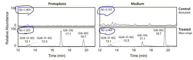 看文献时遇到不懂的,如图,蓝色圈内的具体内容代表什么?谢谢。下边说明中有这么一句话:The intensity (NL) of the most abundant peak in the chromatogram section is indicated。 6.PNG |