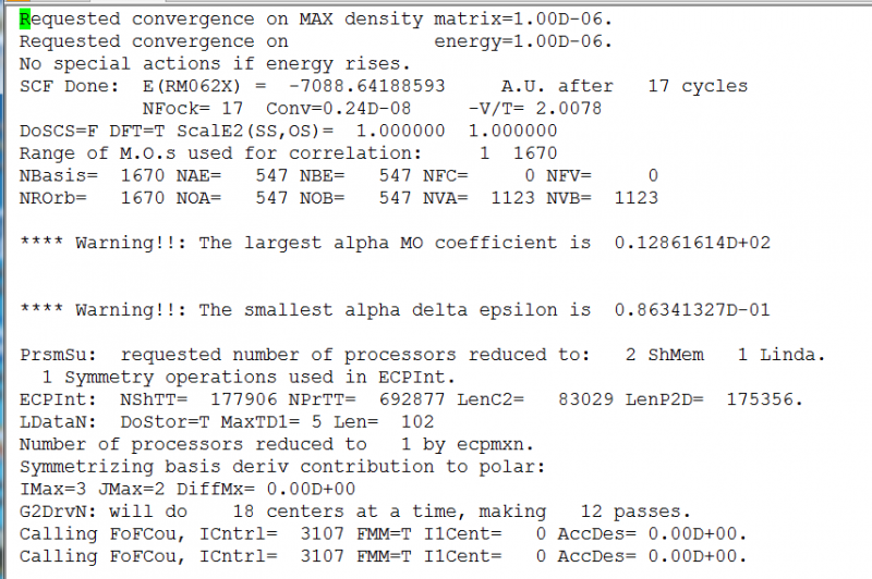 我计算过渡态的反应物原子数207个,参与过渡态的原子是9个---NH3+CH3Cl 的反应,这样的输出结果看不懂,寻求大神帮助~