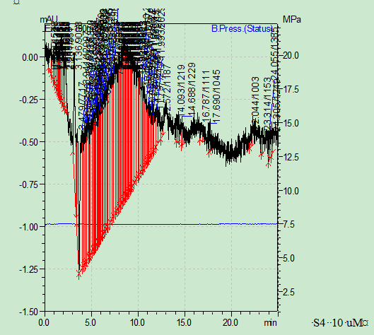 第一次用HPLC测硫代硫酸钠,试测了一个水样和一个样品 水样的基线明显高于0, 样品的信号很混乱 我用的是C18 柱子,测样时间25分钟;进样量10 uL, 流速0.8 mL/min 高手帮忙看看 H2O.png 样品.png |