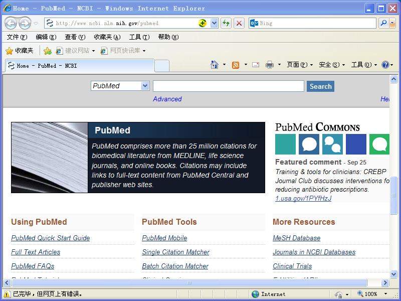 pubmed网页上有错误,无法正常运行,不能用搜索