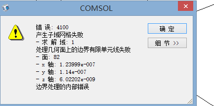 做一个模拟电磁场阵列的模拟,但是在细化网格的时候产生:边界处理的内部问题,但是当删去方块只剩下2到3个的时候,模拟仍能继续,大神解决一下这是为什么?多谢啦! comsol问题.png comsol问题2.png |