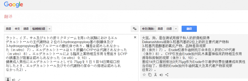 第一段 大鼠,狗,是在测试用猴子和人的肝微粒获得 Dekarushitoru消除3-羟基丙基的2位上的的主要代谢产物和 3-羟基丙是醇基的氧化产物,品种差异观察 的(体外)7)。 Erude校准牛油树托尔中未在人肝的CYP代谢 (体外)8)。 CYP引发由Erude加州乳木果雷神临床药物相互作用 诱导和抑制的观察(体外)9,10)。 曾经14天口服投射出0天75μg作为Erude卡尔谢伊收费在健康成年男性 当你给了,排泄的Erude加州牛油树高大及其代谢产物尿观察 没有2)。 翻译工具: google翻译http://translate.google.cn/ |