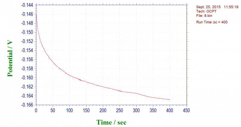 溶液是什么?工作电极是什么?初步估计是你刚放进去进开始测,开路电位还没有稳定,一般要在溶液中浸泡半个小时左右才能稳定,你再多测一会试试