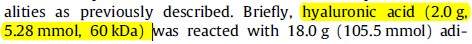 透明质酸 质量与摩尔量之间的换算问题已有2人参与