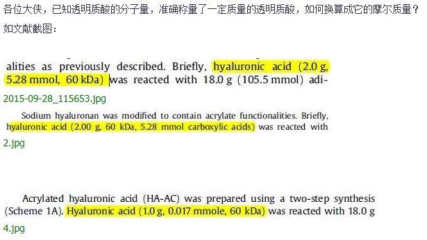 透明质酸 质量与摩尔质量的换算问题 已有1人参与