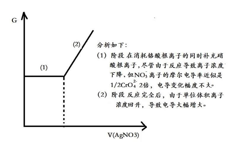 用硝酸银滴定重铬酸钾,过程中电导的变化分析如附图所示。