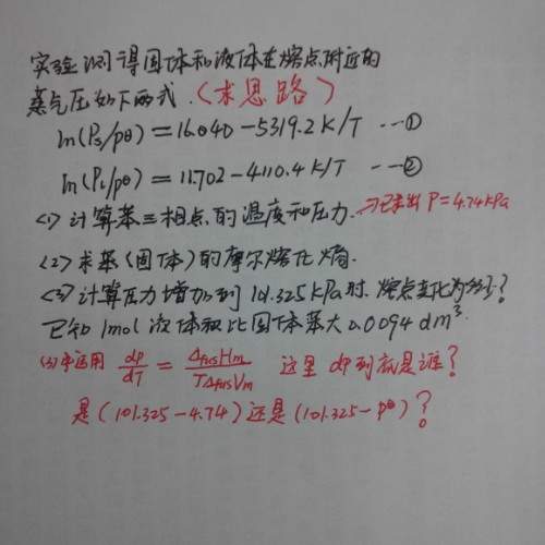三氯甲烷的正常沸点为334.7K,298.15K时表面张力为0.02667N.m-1,密度1480Kg.m-3。(1)估算三滤甲烷的摩尔蒸发焓 (2)求298.15K时三氯甲烷的蒸汽压 (3)将三氯甲烷分散成半径为1✘10-8m的小液滴,求液滴上的平衡蒸汽压 [ 发自手机版 http://muchong.com/3g ] |