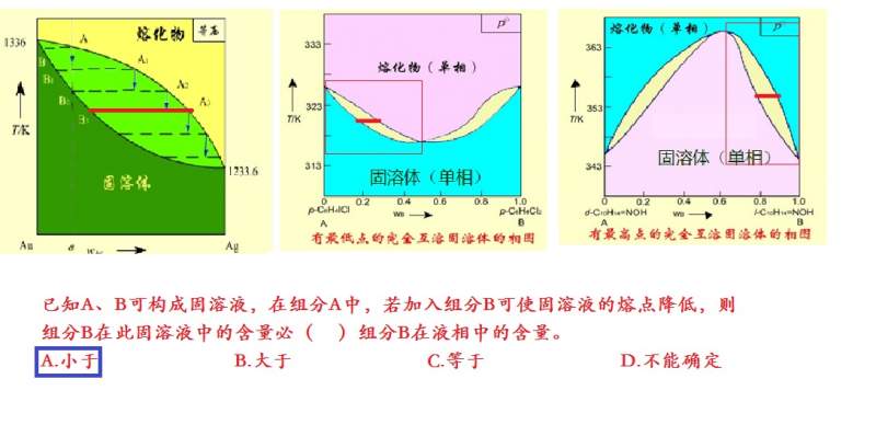 在A中,若加B可使固溶液熔点降低,则B在此固溶液与在液相中的含量比较。 已有1人参与