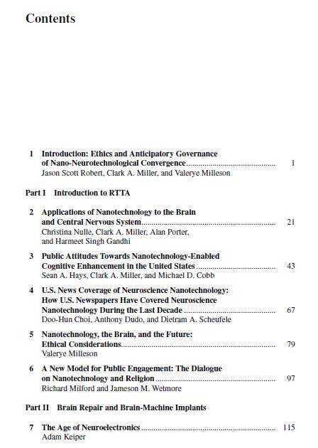 Nanotechnology, the Brain, and the Future Editors: Sean A. Hays, Jason Scott Robert, Clark A. Miller, Ira Bennett ISBN: 978-94-007-1786-2 (Print) 978-94-007-1787-9 (Online) |