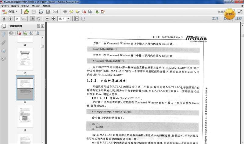 鉴于网上不好找到完整版的该书籍资源,所以分享出来供虫友交流学习!! MATLAB高效编程技巧与应用_25个案例分析完整版PDF,与下面上传的配套源码一起使用,效果更好!! 2.jpg thumb.jpg |
