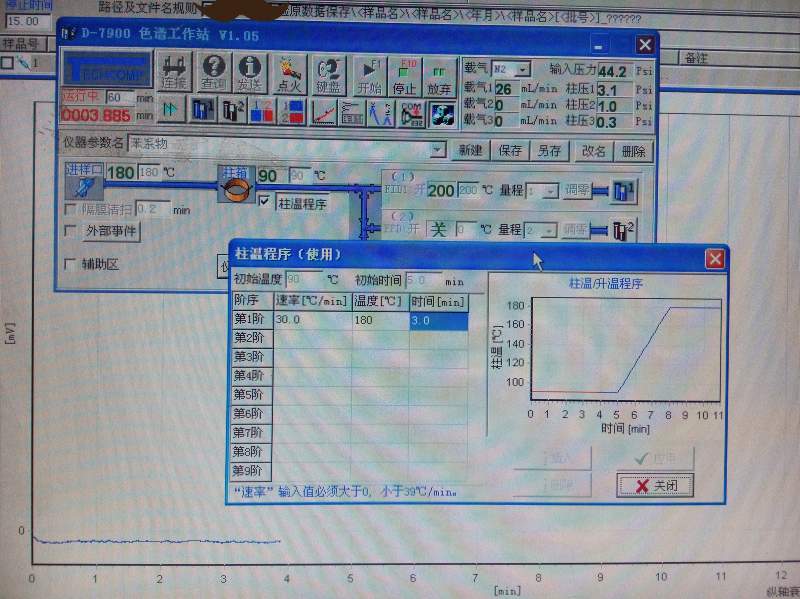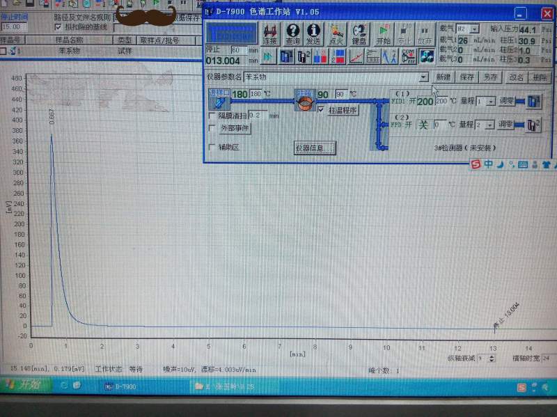 仪器是GC7900 色谱柱:小口径毛细管柱 进样口:180度 FID :180度 柱箱:90度 程序升温至180度 做了太多次,就是分离不开,求助给点意见和思路啊! IMG20150929151650_副本.jpg IMG20150929153524_副本4.jpg IMG20150930174041_副本2.jpg IMG20150930205244_副本3.jpg |